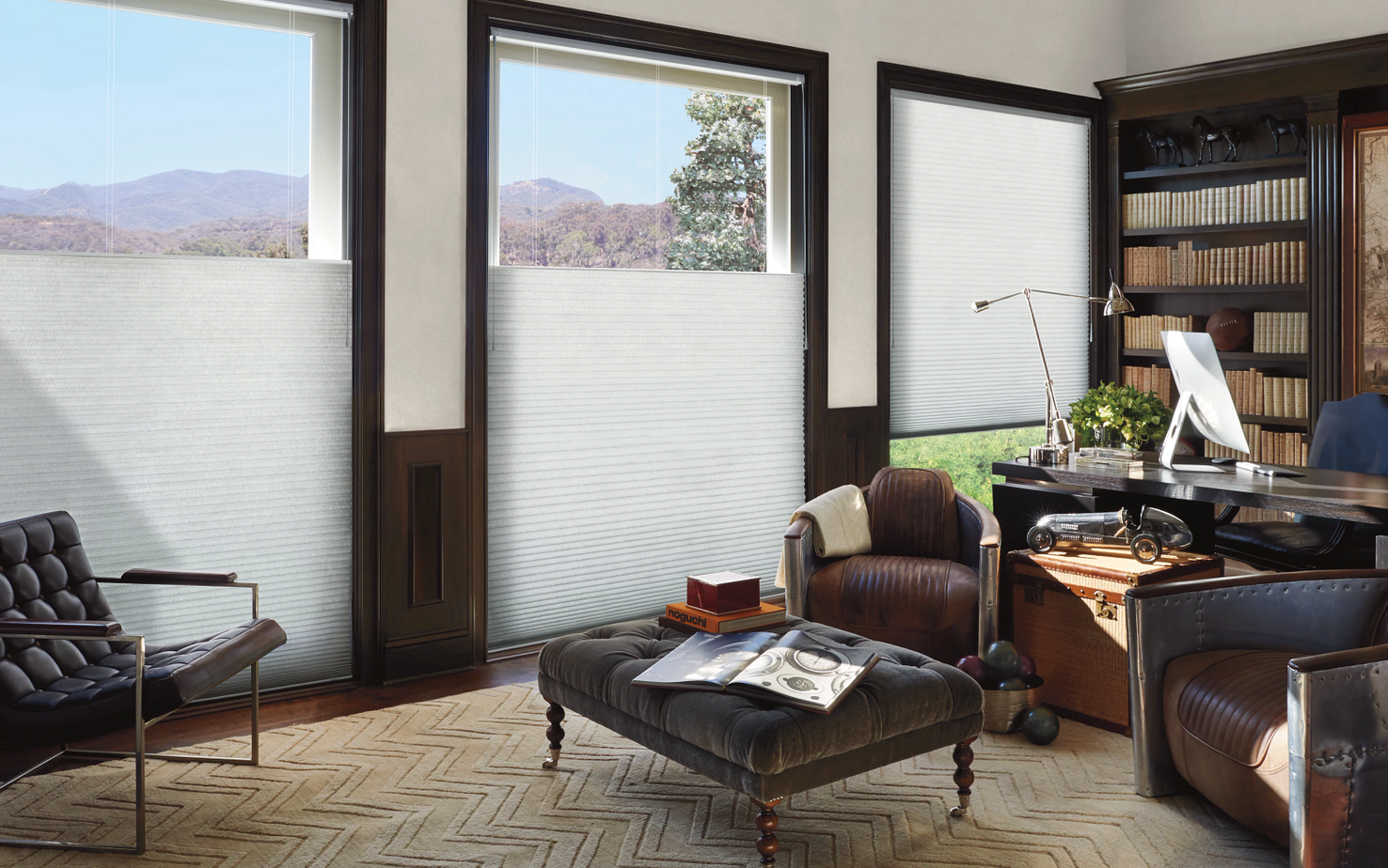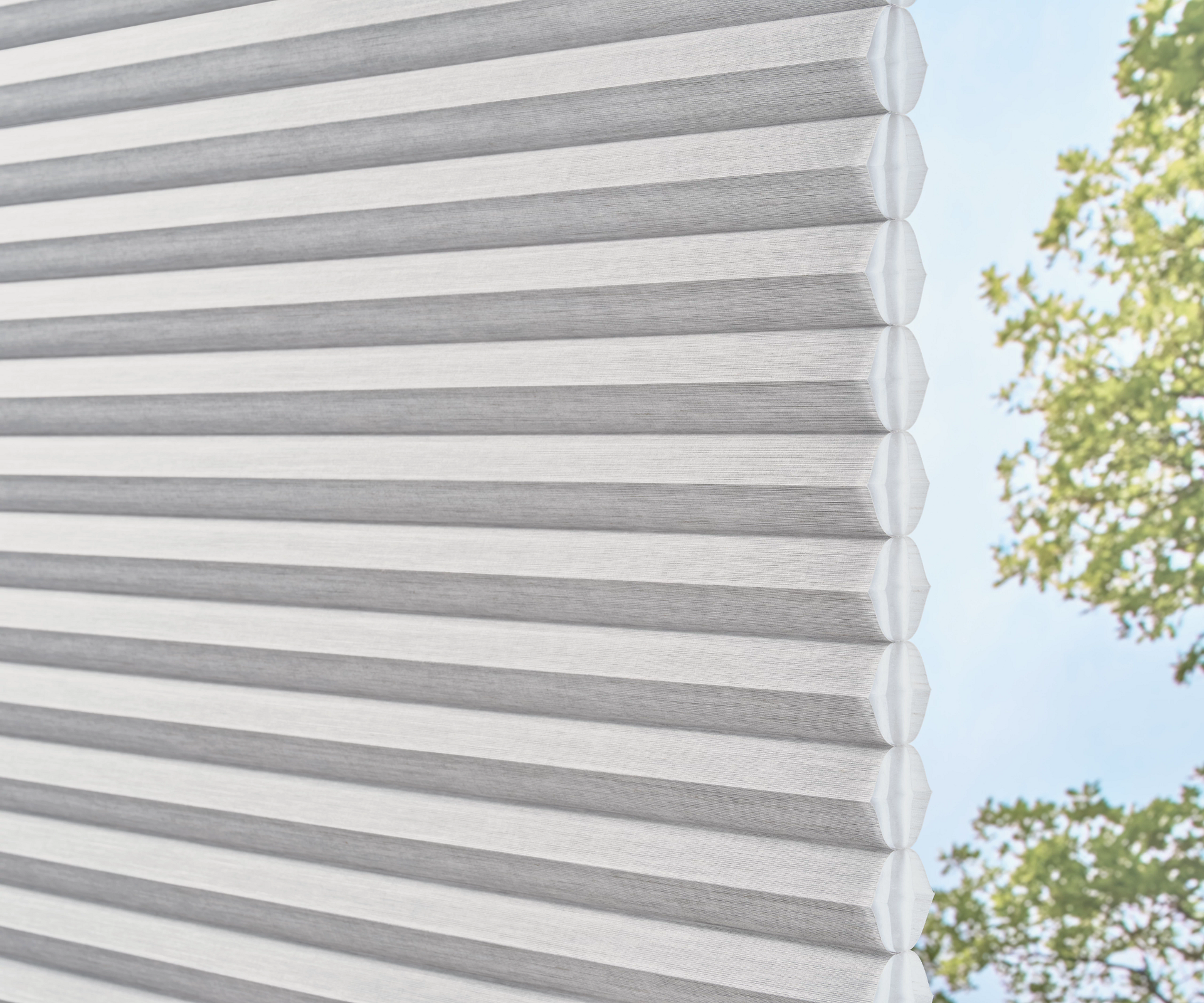 Stylish, versatile, and highly efficient—Hunter Douglas honeycomb shades are designed to beautify your windows while improving your home’s comfort. Their unique cellular construction creates insulating pockets that help regulate indoor temperatures, keeping rooms cooler in the summer and warmer in the winter. The result: enhanced energy efficiency and potential savings on utility bills.