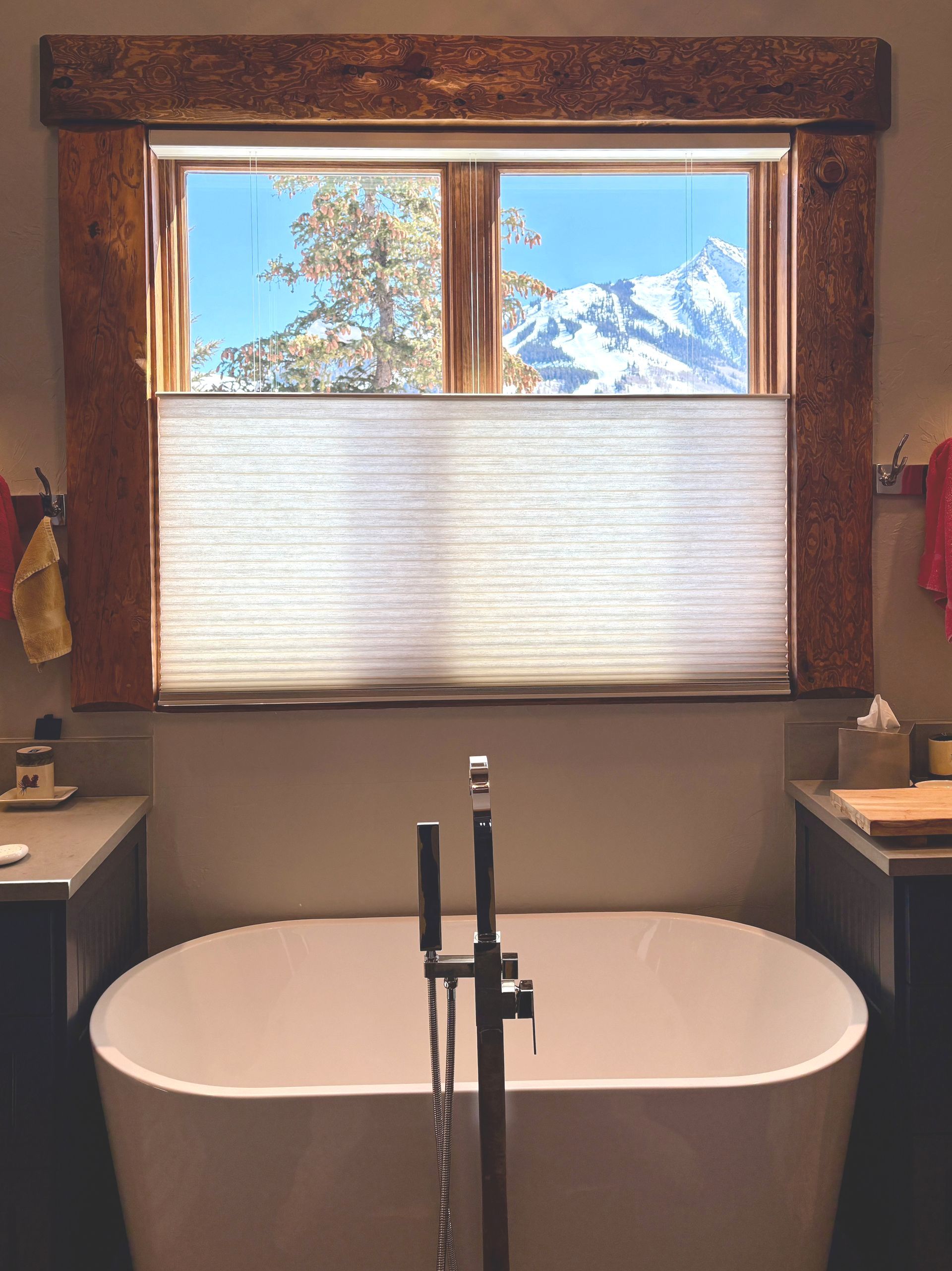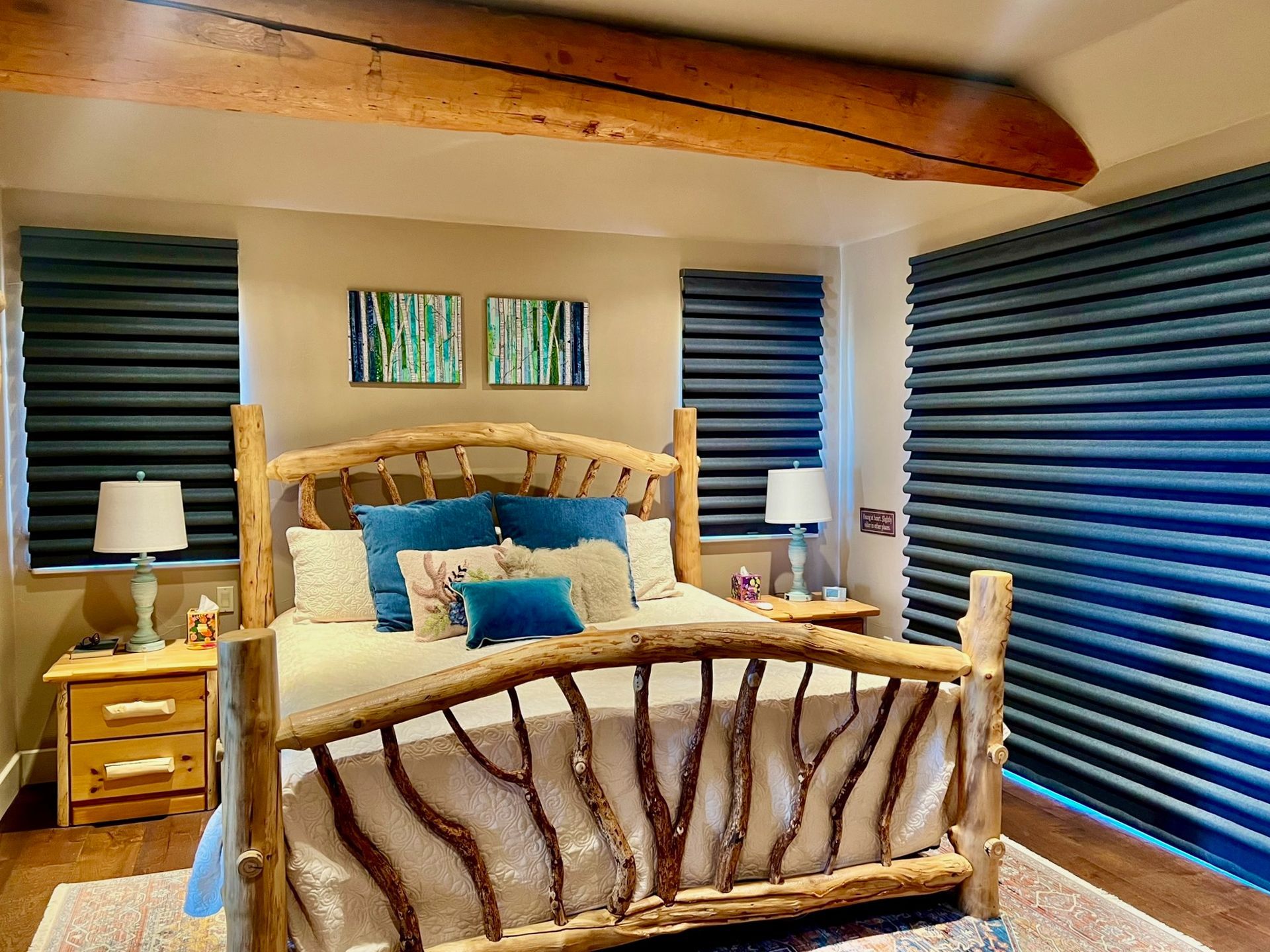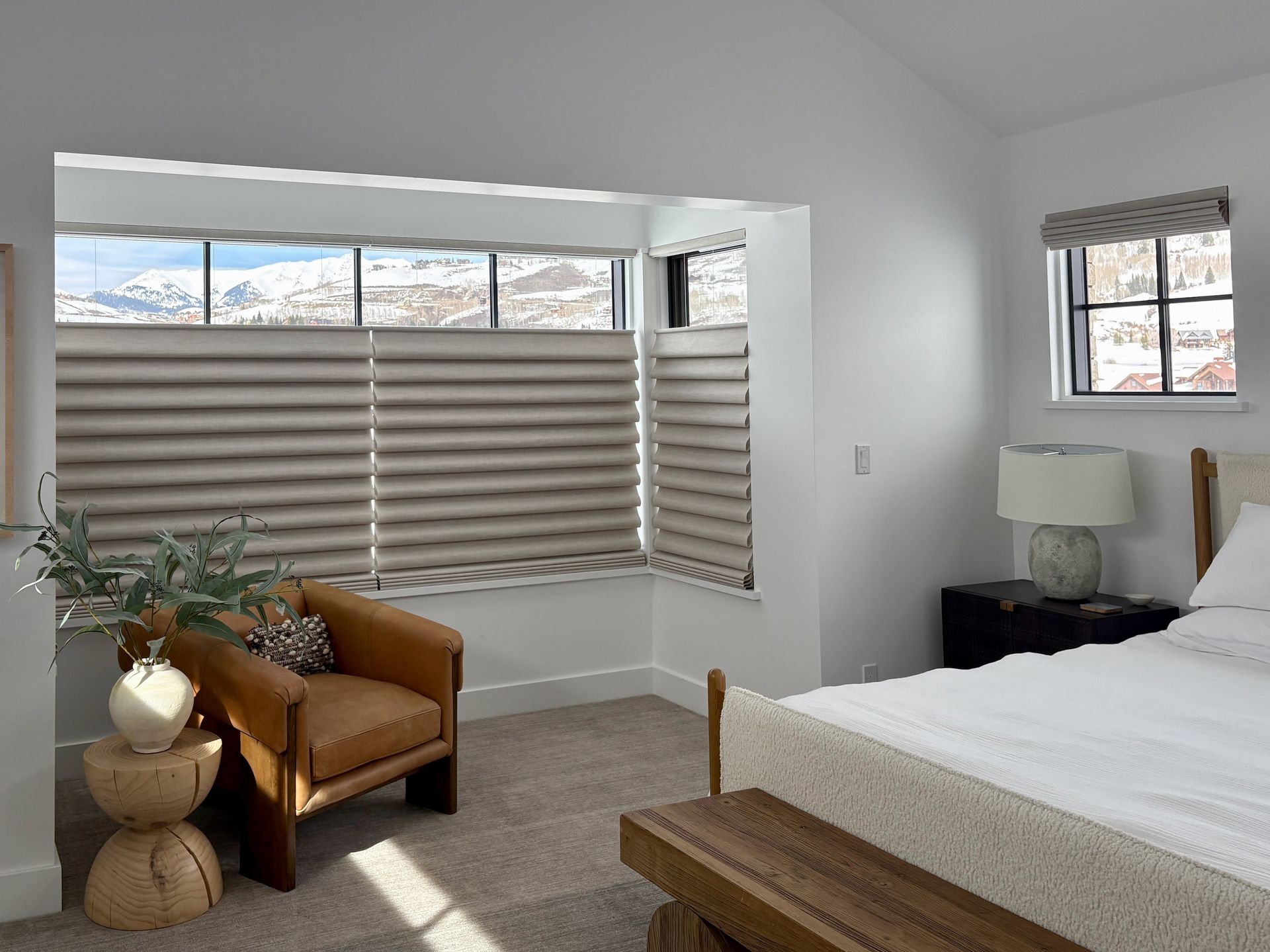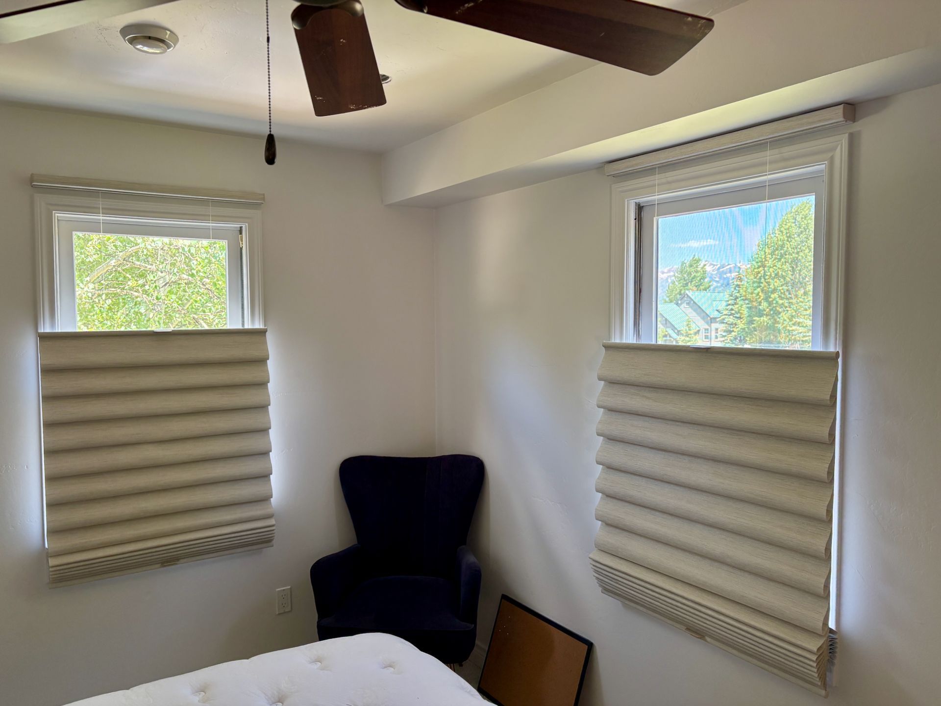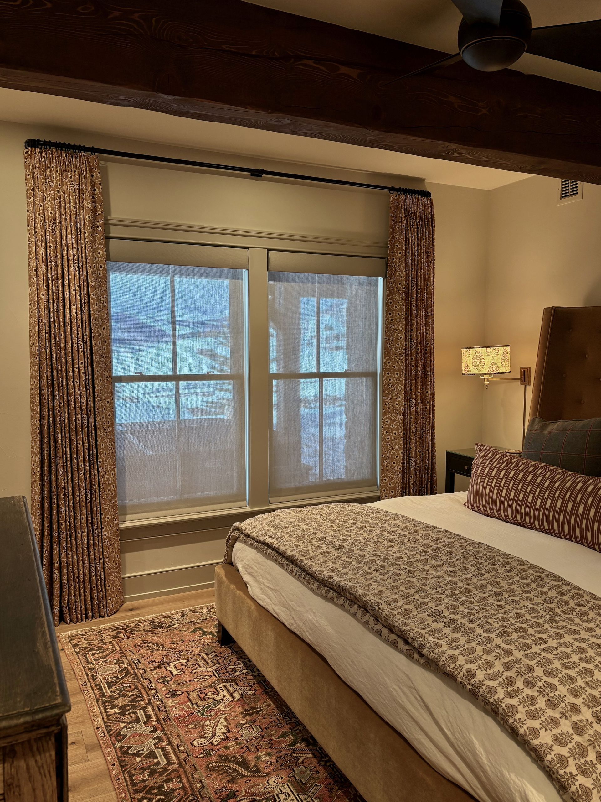 "We have a very odd-shaped window in one of our guest rooms. Monte did a beautiful job with the custom fit blackout blind. Shelby is very professional and easy to work with. We are very happy with the job they did." – Ginger R.